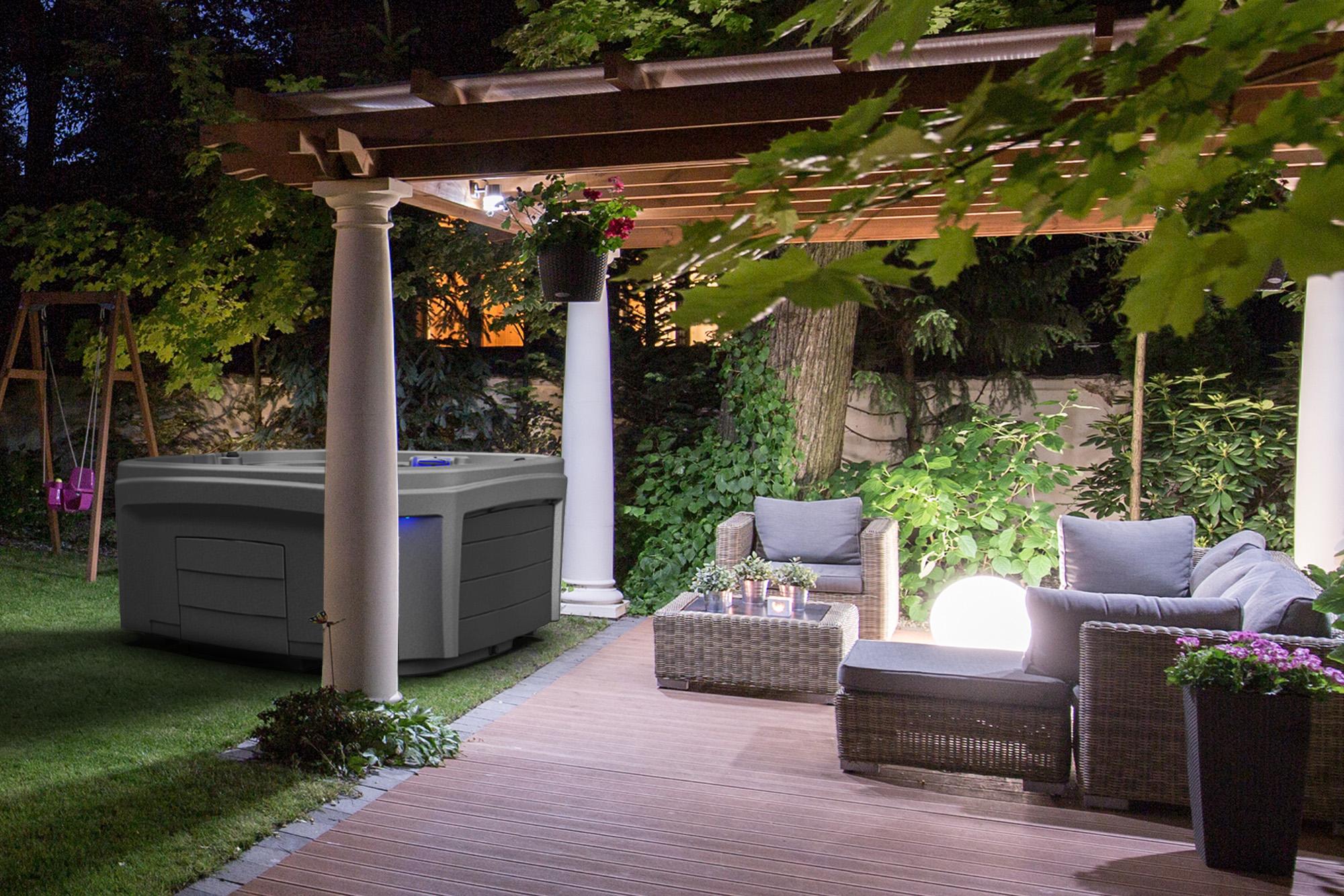 Step into the true leader in roto mold spa design with the Spartan Spa. The sleek, modern design offers unequaled comfort, ambience and practicality, accented by features like a back lit, cascading waterfall, external LED sconce lighting. Spartan Spas delivers a truly gratifying spa ownership experience.