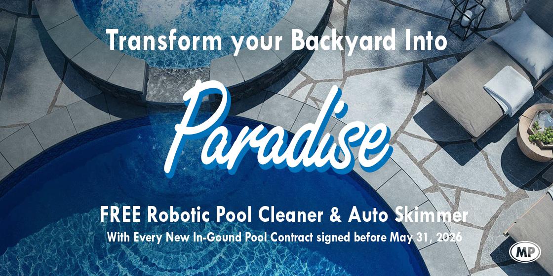 Receive a FREE robotic pool cleaner & solar powered surface skimmer with every new in-ground and fiberglass pool contract.